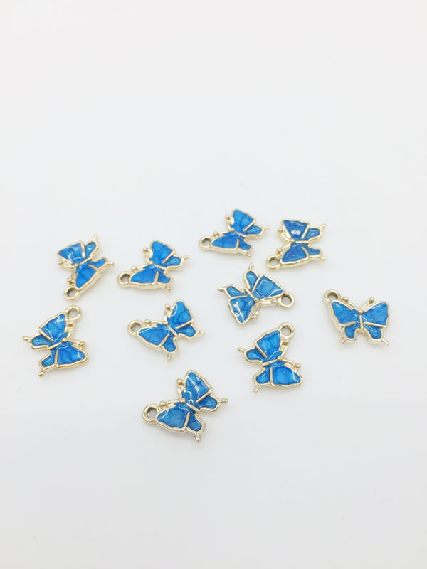 20 x Light Blue Glass Butterfly Charms, 11x10mm (1215)