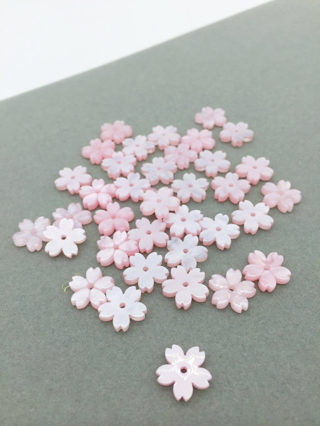 10 x Pink Acrylic Mother of Pearl Sakura Flower Beads, 11mm (3232)