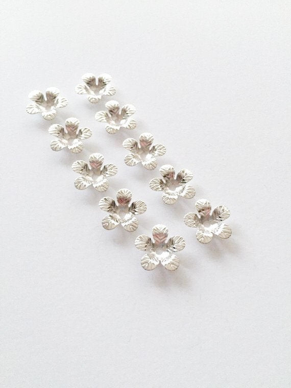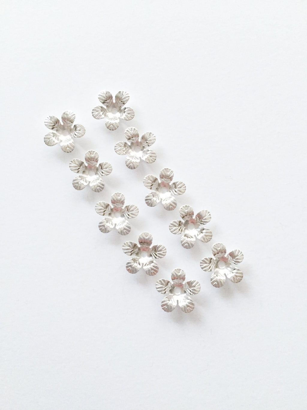 10 x Silver Plated Tiny Flower Bead Caps, 11mm (1528)