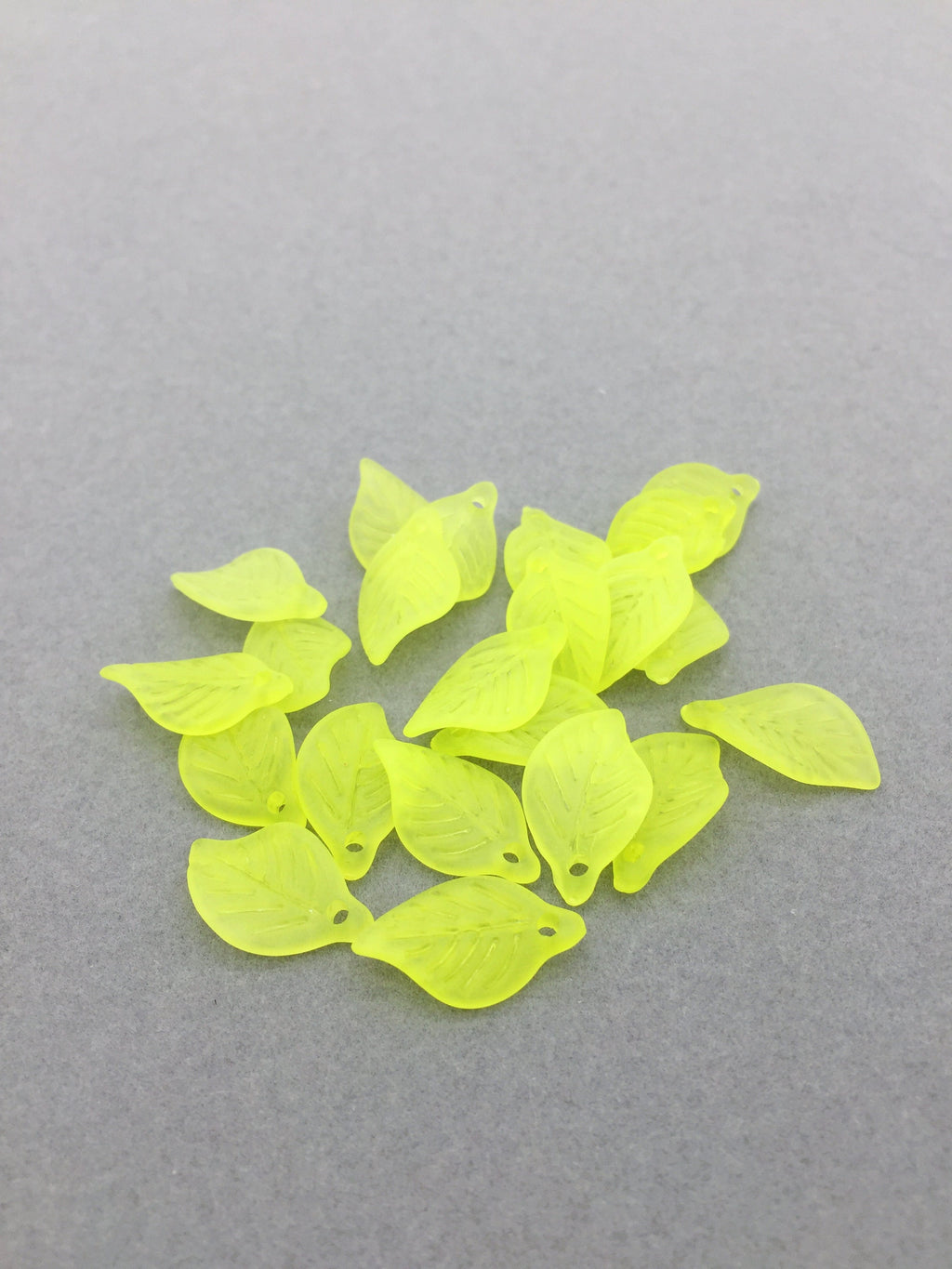 25 x Frosted Green Lucite Leaves, 18x11mm Green Leaf Charms (3012)