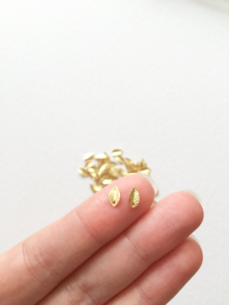 25 x Tiny Gold Textured Thin Leaf Charms, 4x7mm (0091)
