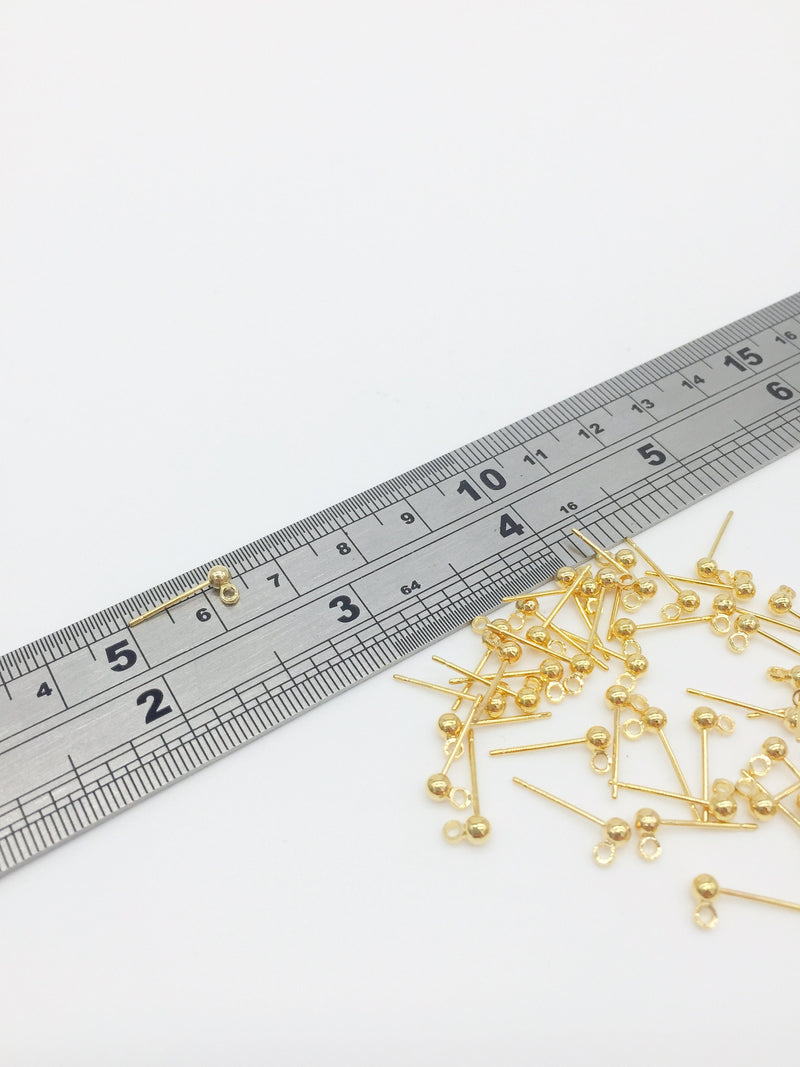 1 pair x 18K Gold Plated Ball Stud Earrings, 3mm Ball Posts (0359)