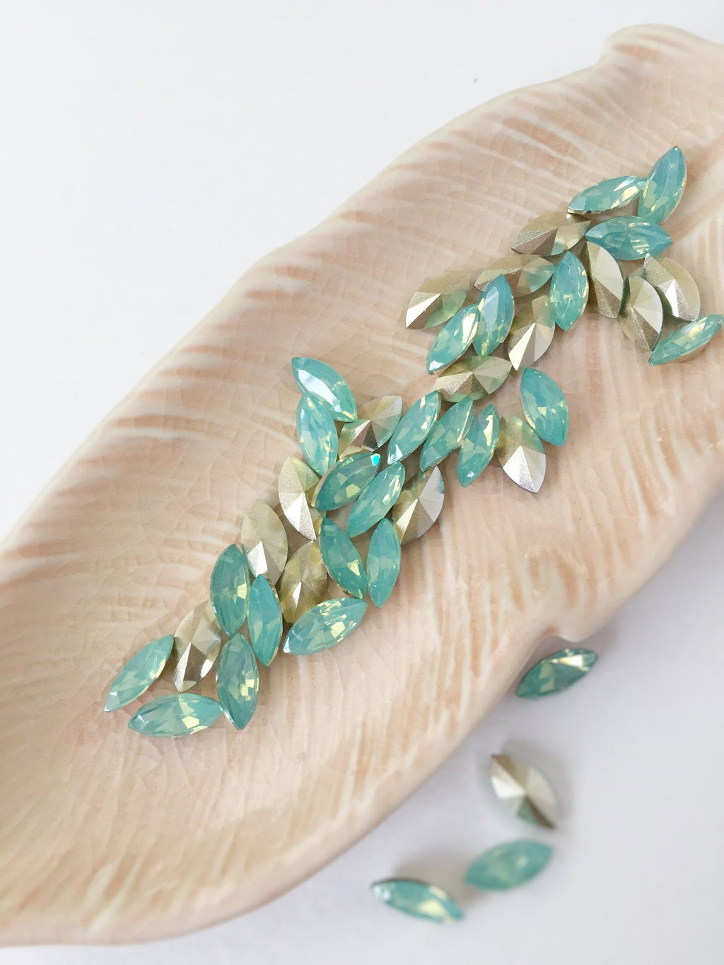 36 x 5x10mm Green Opal Navette Rhinestones, Foiled Back (0883)