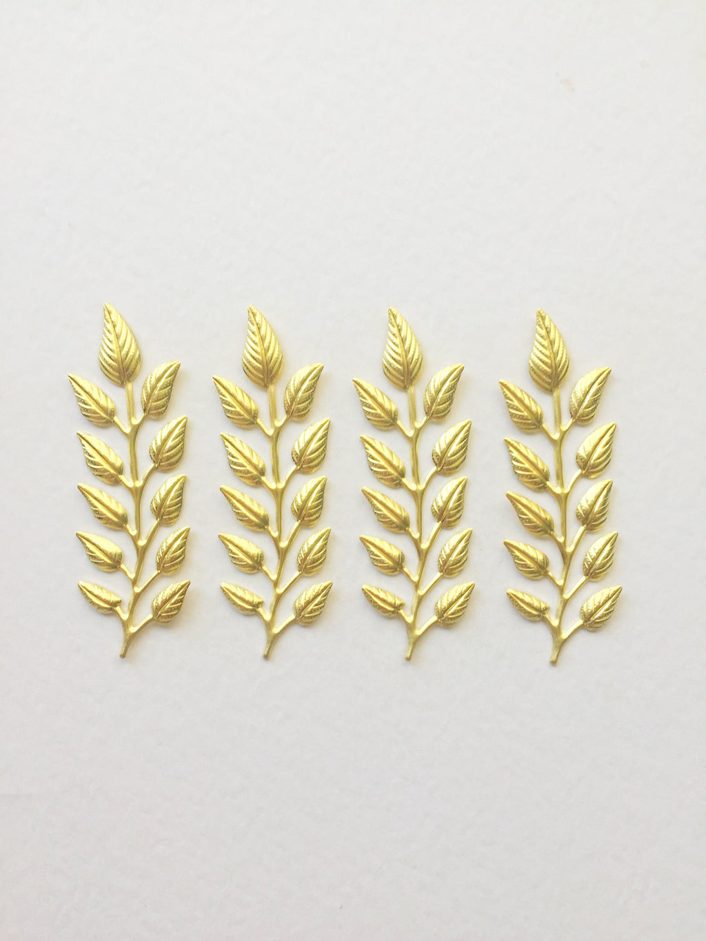 4 x Gold Metal Laurel Leaf Stampings, 64x21mm