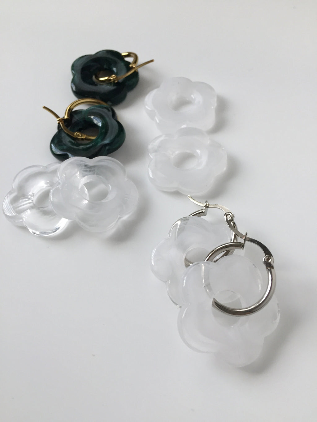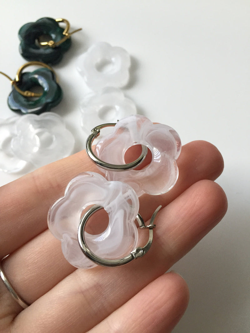 2 x Marbled White Resin Flower Beads, 26mm Flower Charms for Hoop Earrings