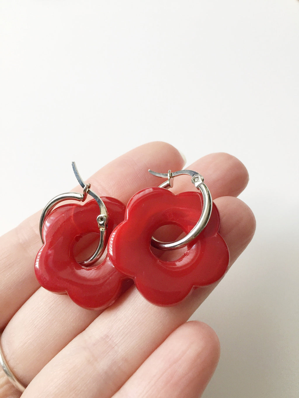 ✨ Red resin flower beads, perfect for spring-summer bloom earring hoops.