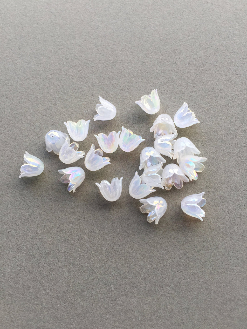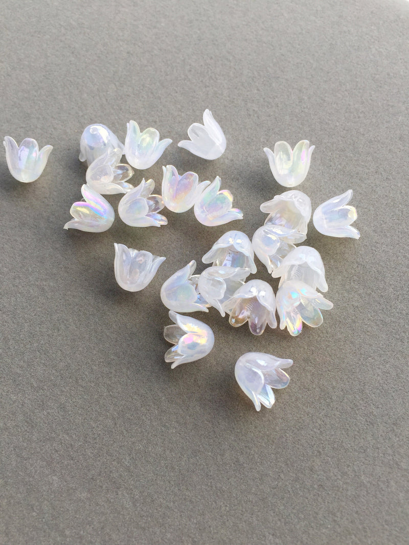 40 x AB White Acrylic Semi-translucent Bell Flower Beads, 10x11mm (3134)