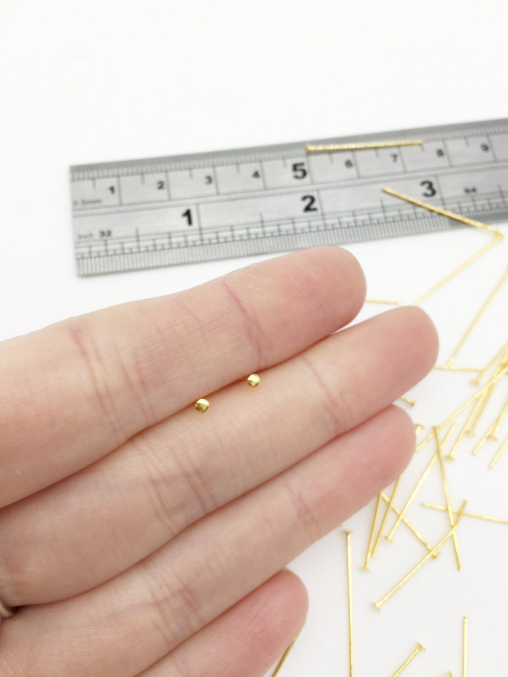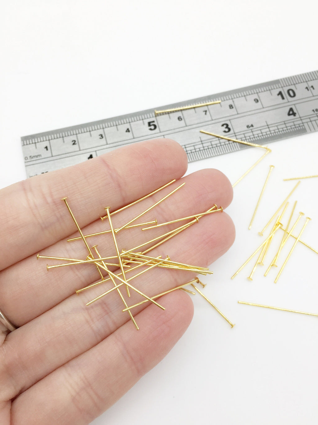 50 x 18K Gold Plated Brass Head Pins, 25x0.7mm (3327)
