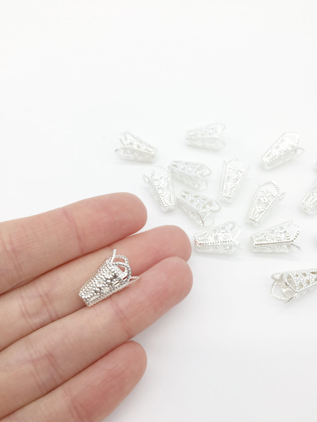 Silver filigree flower bead caps