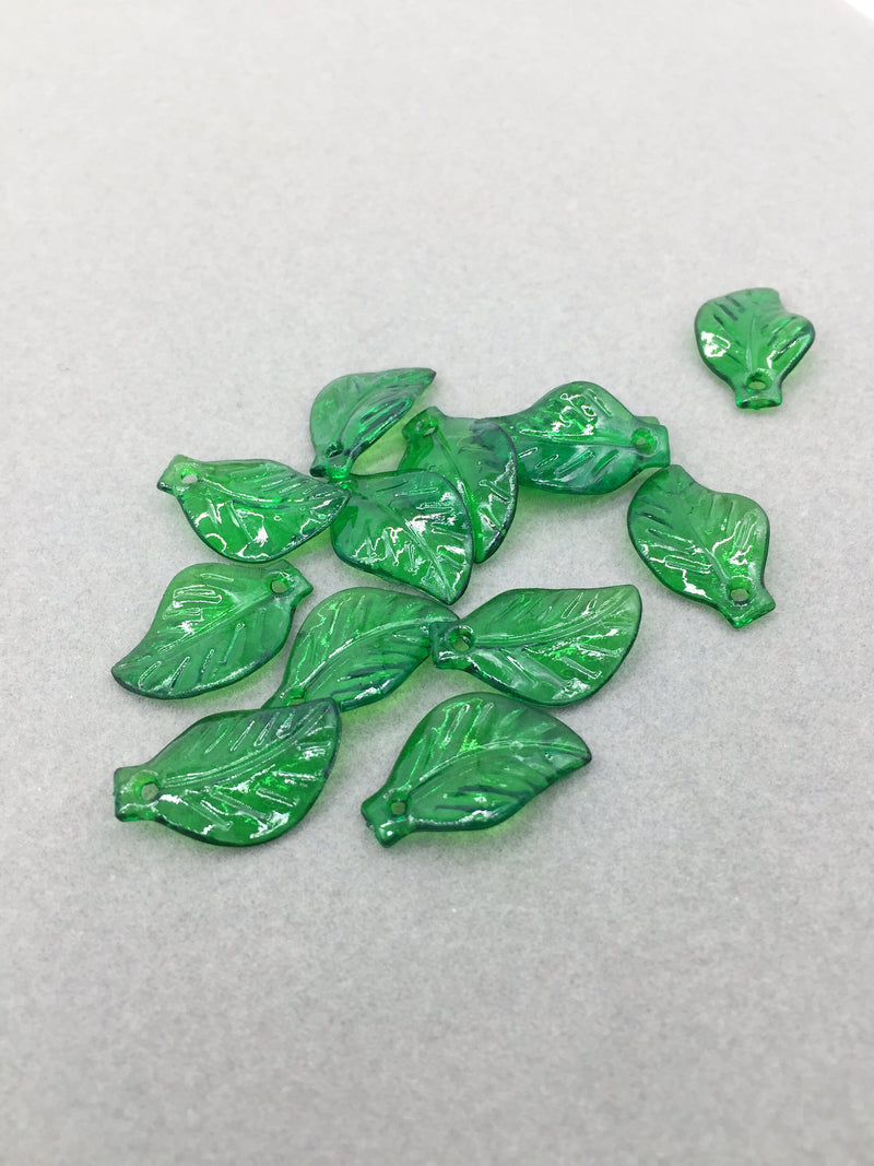 60 x Bottle Green Acrylic Leaf Charms, 13x19.5mm