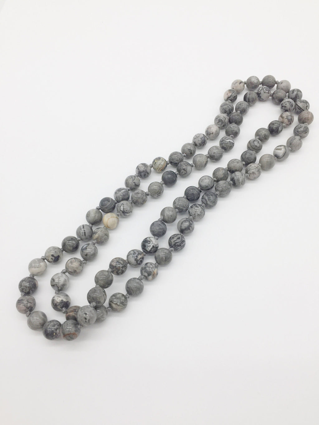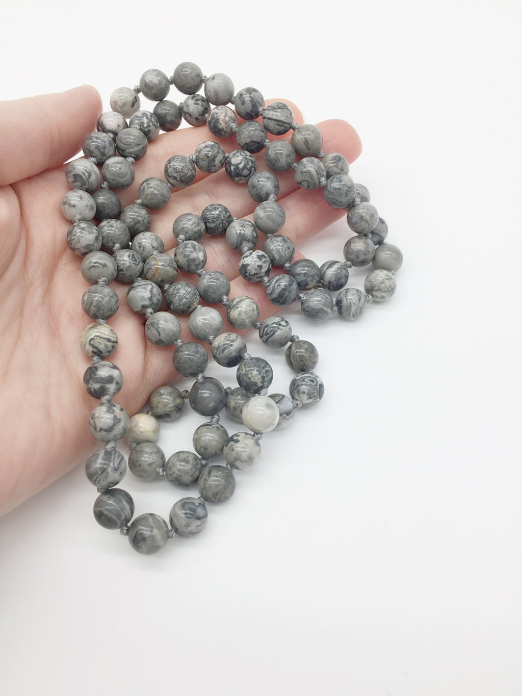 ✨ Knotted polished picasso grey jasper necklace blank - add your tassel, pendant, charms or whatever you fancy for a unique gemstone piece of jewellery