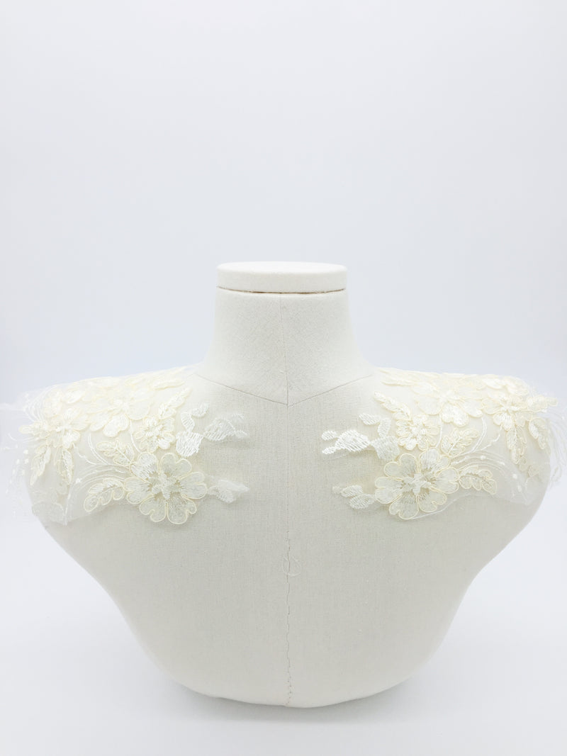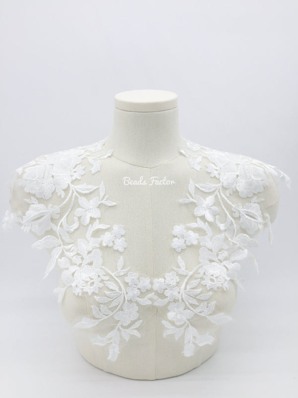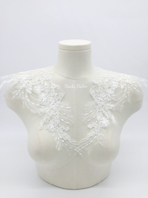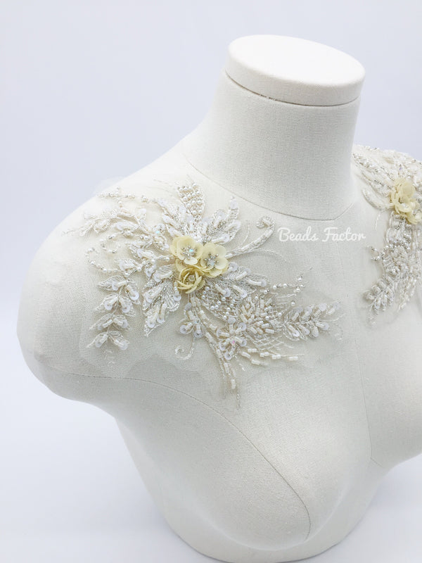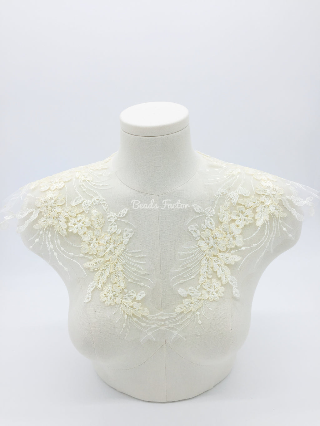 Large Mirrored Pair Champagne Flower Lace Applique, 44x23cm