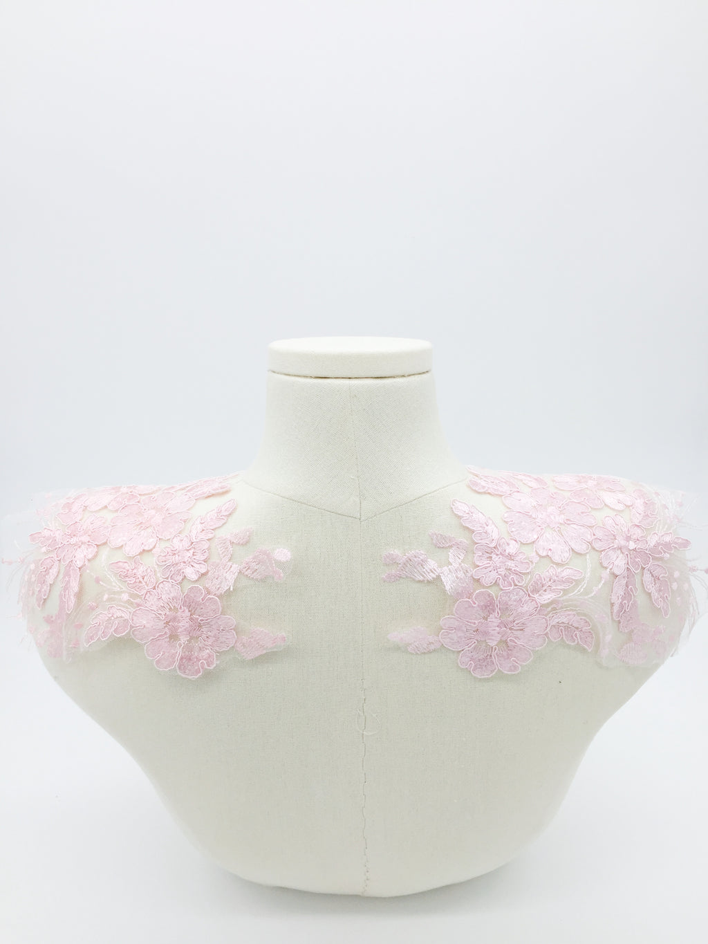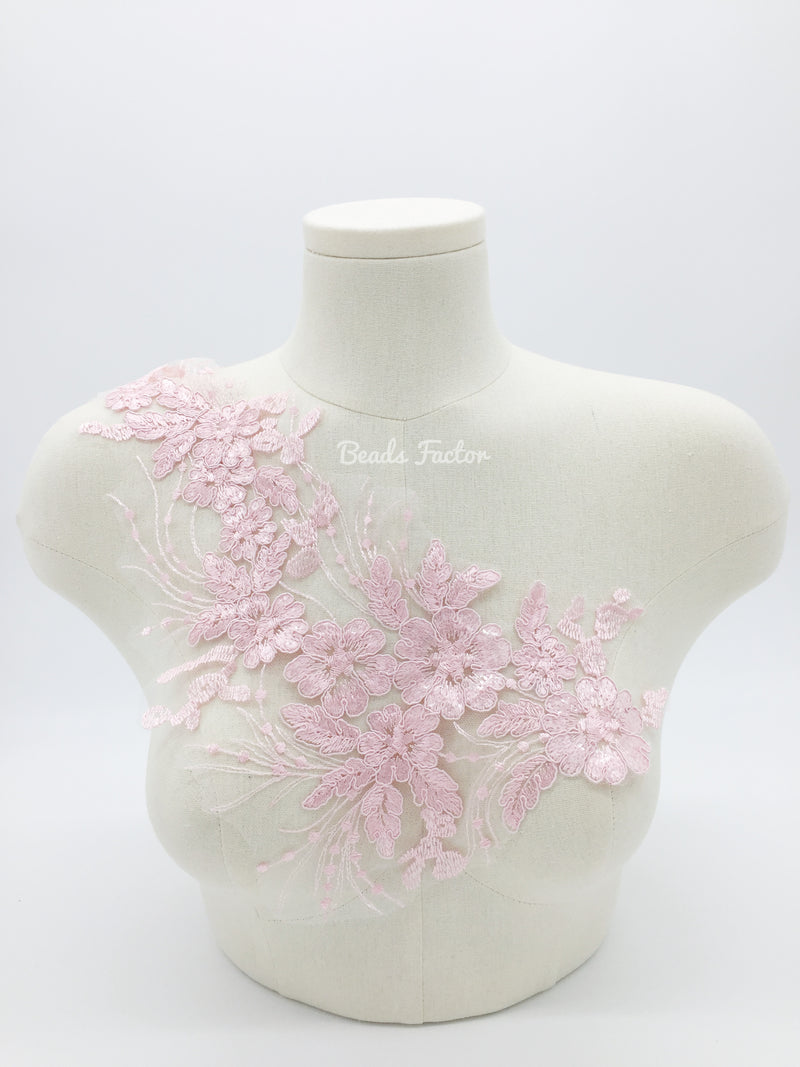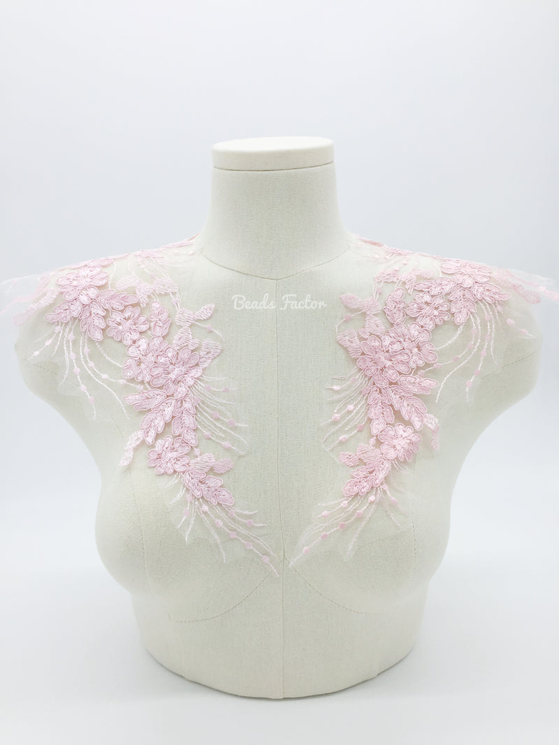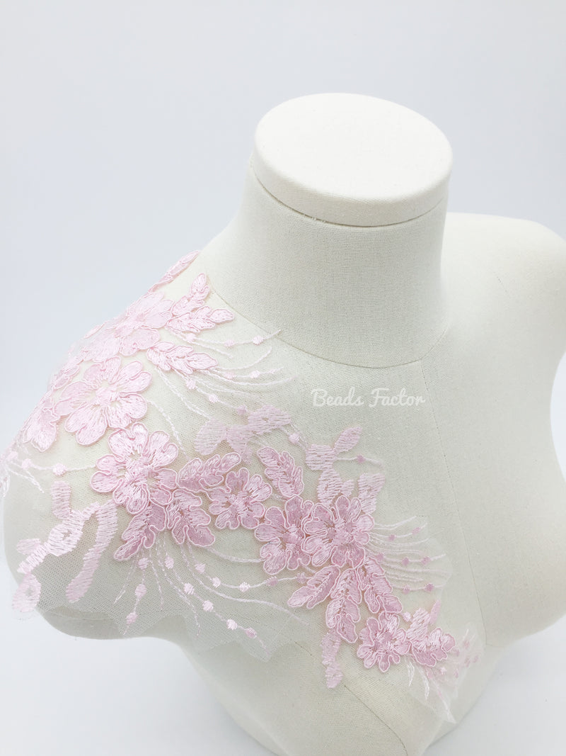 Large Mirrored Pair Pink Flower Lace Applique, 44x23cm
