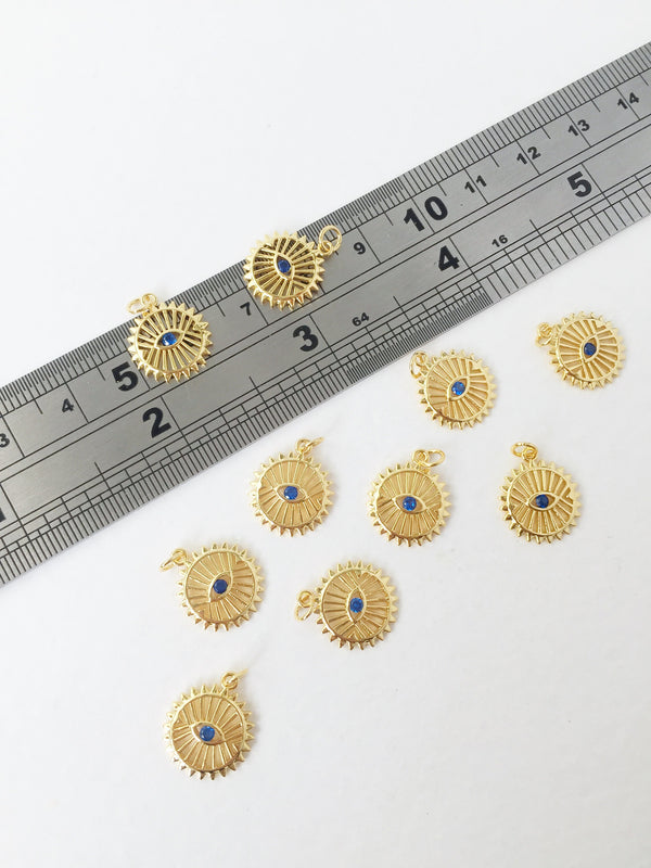 10 x Blue Enamelled Brass Evil Eye Charms, 6.5x9mm (0334)