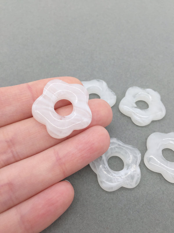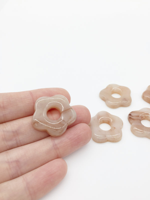 2 x Marbled Creme Caramel Resin Flower Beads, 26mm (0212)