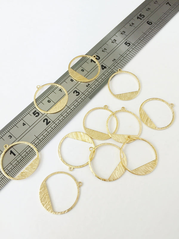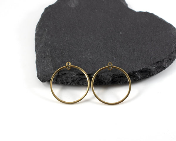 8 x Raw Brass Beadable Hoop Pendants, 28x25mm Linking Rings With Two Loops (C0677)