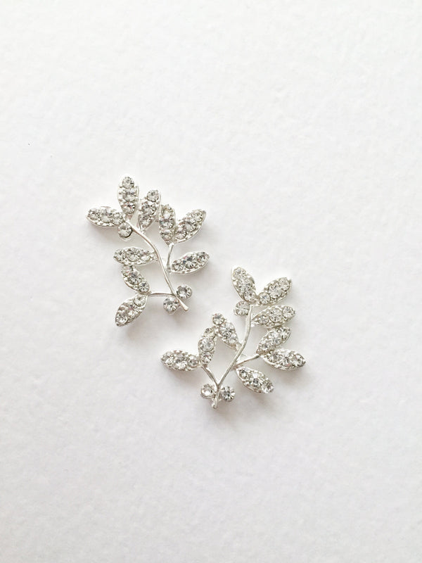 2 x Silver Leaf Branches with Diamante Rhinestone Crystal Tree Branch, 32x30mm (D5)