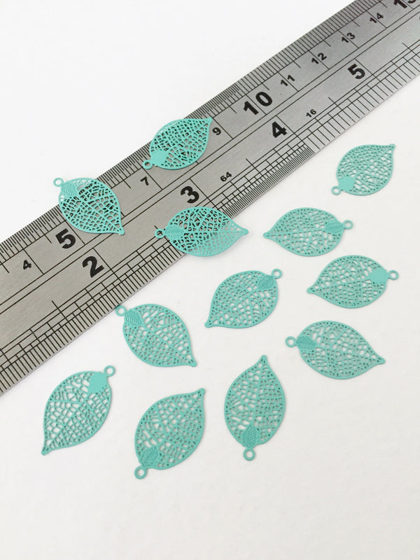 10 x Tiny Green Enamel Filigree Leaf Pendants, 11.5x5.5mm (2821)