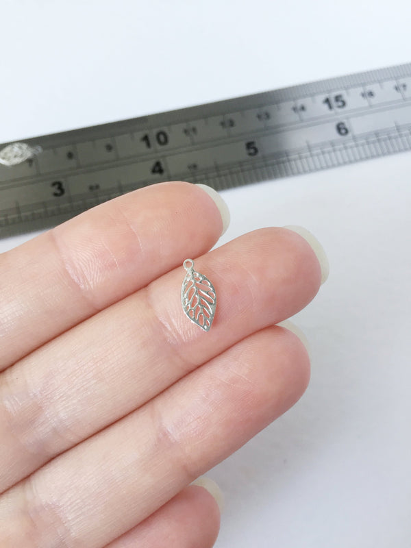10 x Tiny Silver Plated Filigree Leaf Pendants, 11.5x5.5mm (0467)
