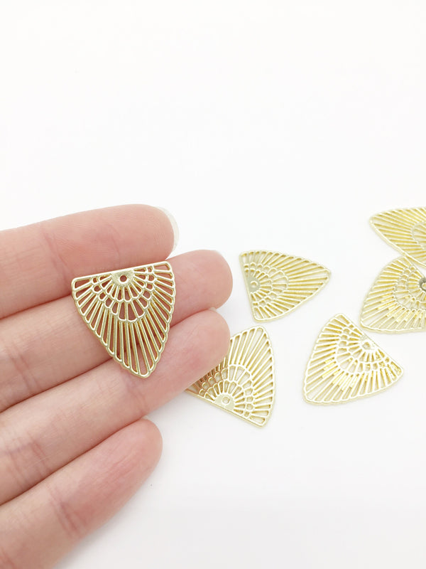 6 x Gold Filigree Leaf Pendants, 24x14mm (3289)