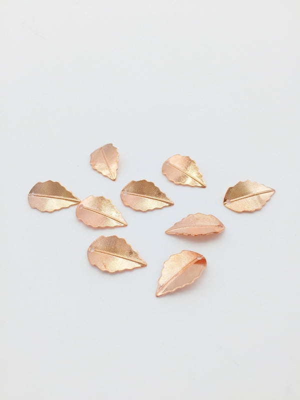 12 x Rose Gold Plated Brass Leaf Charms, 15x8mm (0701)