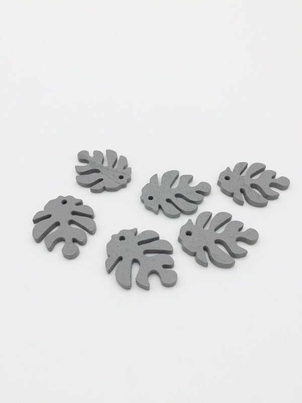 10 x Grey Wooden Monstera Leaf Pendants, 30x25mm (3700)
