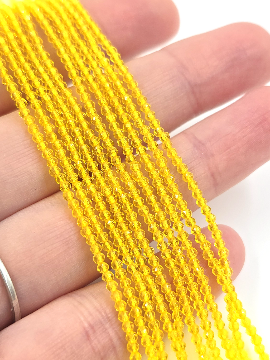 ✨ Crystal glass micro-faceted round beads, yellow colour.