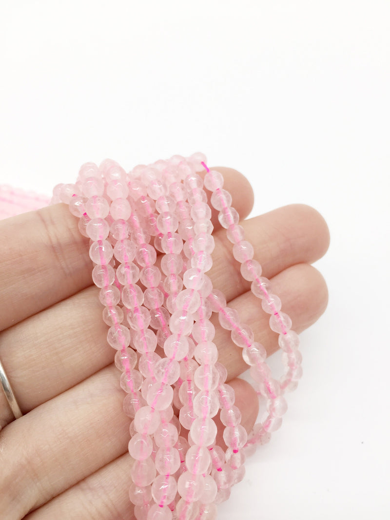 1 strand x Faceted Round Rose Quartz Beads, 4mm (2130)