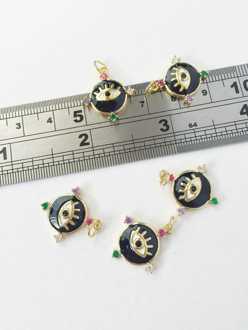 ✨ 18K gold plated brass evil eye charms with tiny multicoloured cubic zirconia and black enamel