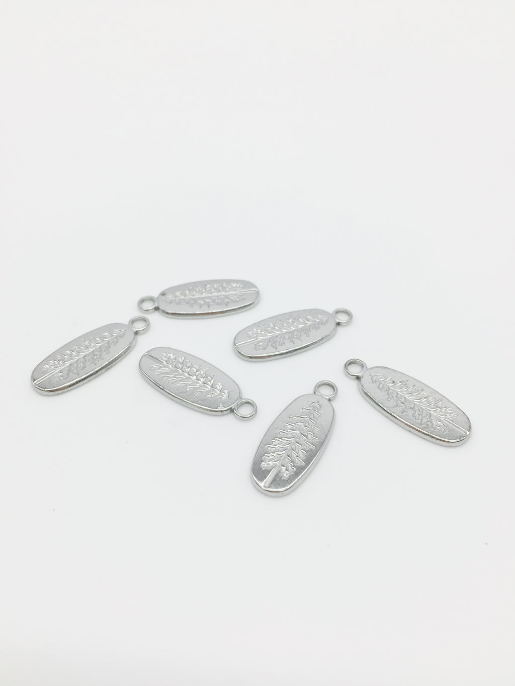 Stainless steel embossed pine charm (charm only, no chain)