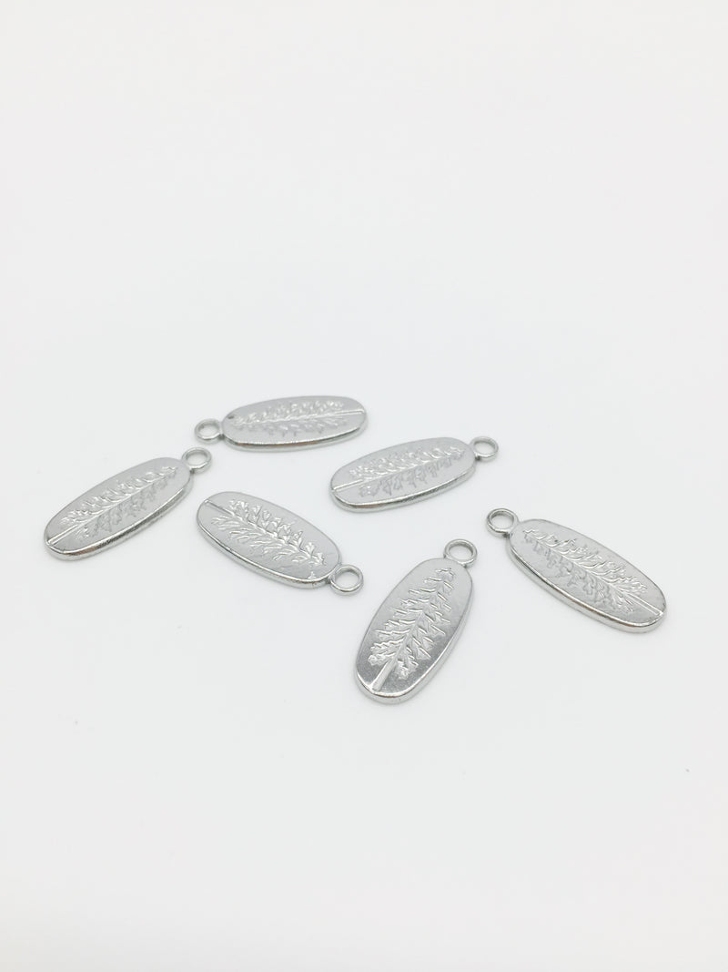 1 x Stainless Steel Oval Pendant with Embossed Pine Tree Pattern, 24x10mm (0126S)
