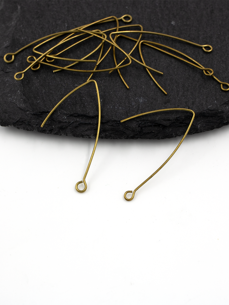 10 pairs x Raw Brass Long Earring Hooks, 36mm (C0709)