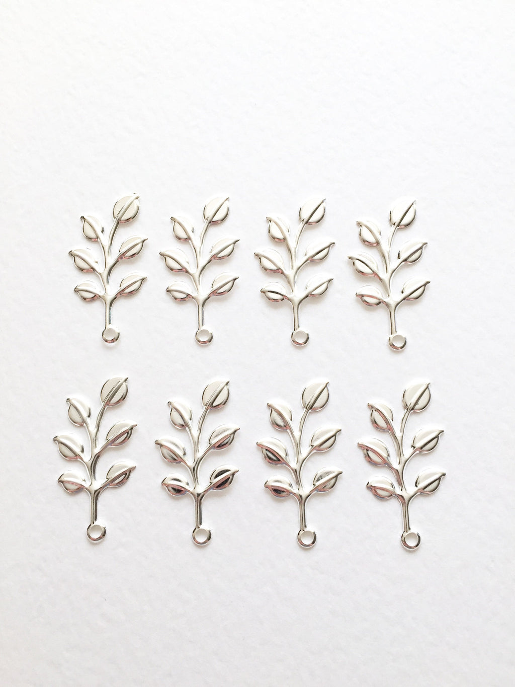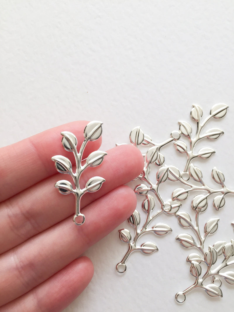 ✨ Bright silver tone leaf branch charms