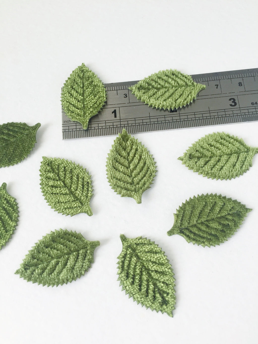 10 x Green Velvet Leaves, Green Leaf Patches, Millinery Leaf