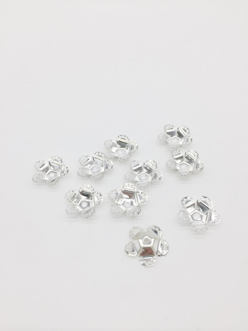 10 x Silver Flower Metal Bead Caps, 16.5mm (D3)