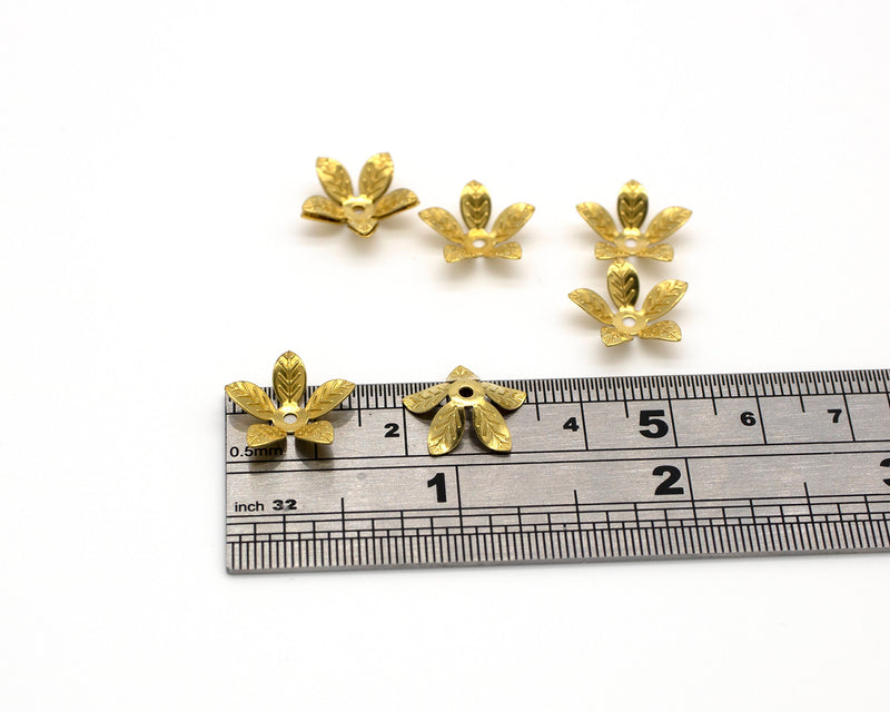 10 x Raw Brass Embossed Petal Flower Bead Caps, 14mm (C0094)