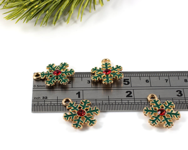 10 x White Enamel Coated Gold Snowflake Charms, 24x19mm (2906)