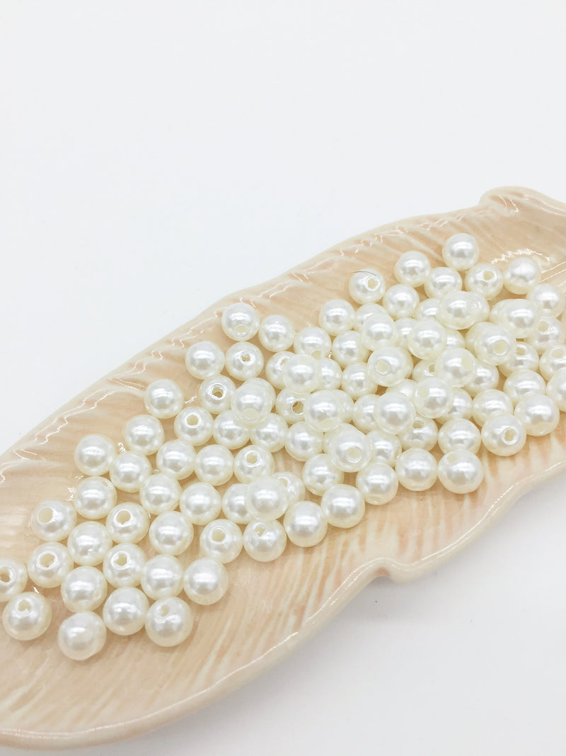 100 x 6mm Ivory Acrylic Pearl Beads (2477)