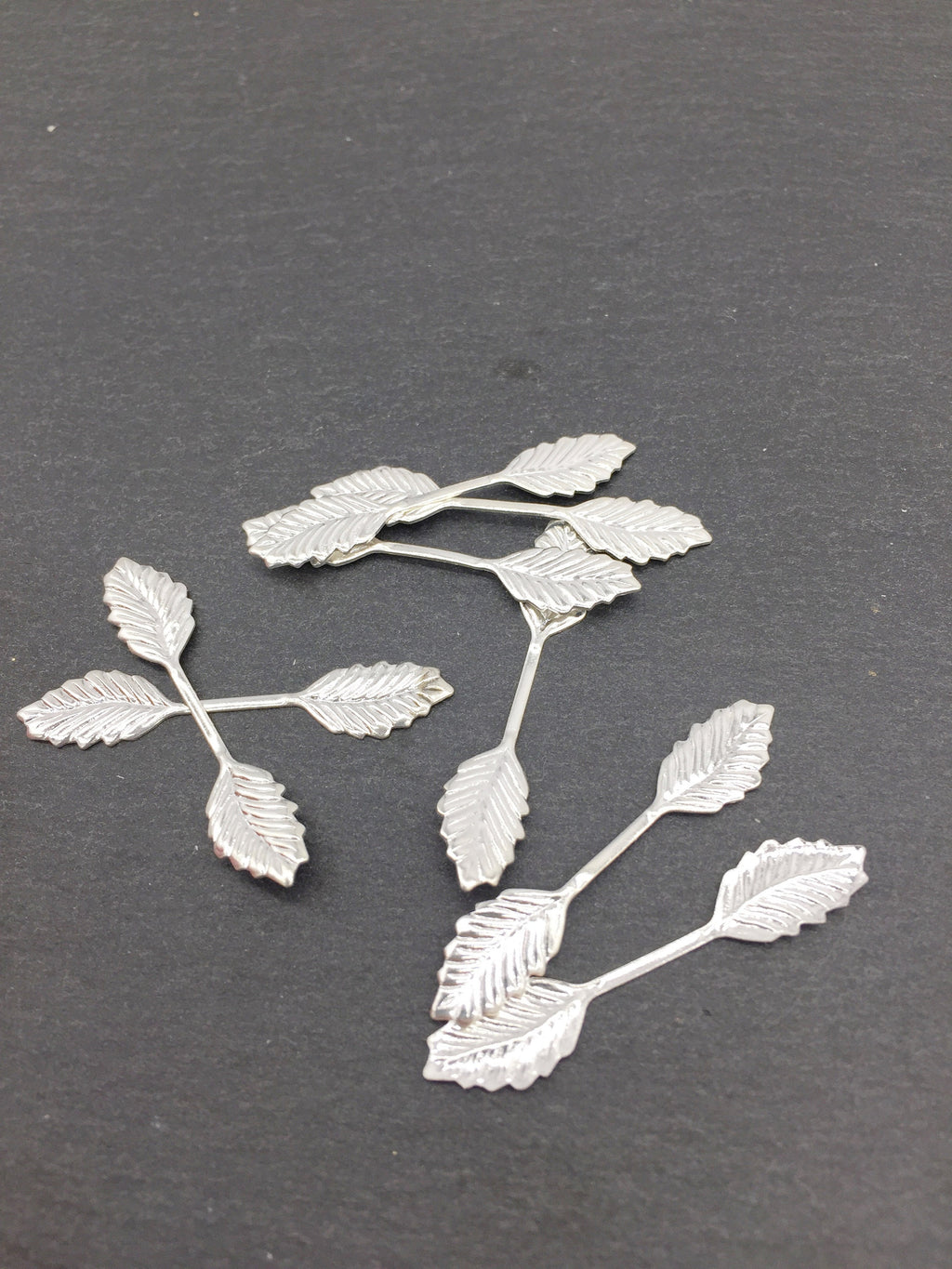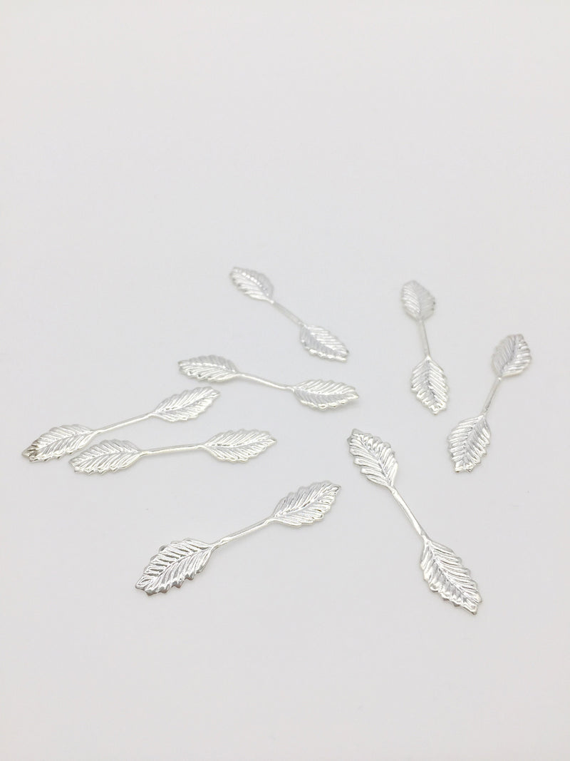 ✨ Silver plated leaf stampings, sold flat, the leaves are sturdy but can be easily bent to create a double leaf charm