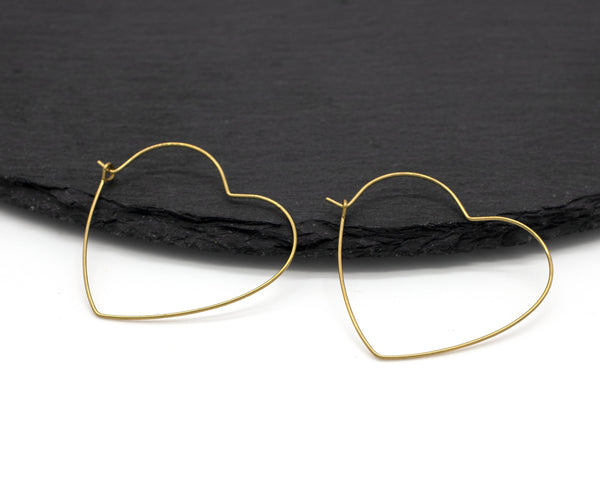 1 pair x 18K Gold Plated Brass Heart Earring Wire, 23x19mm (0072)