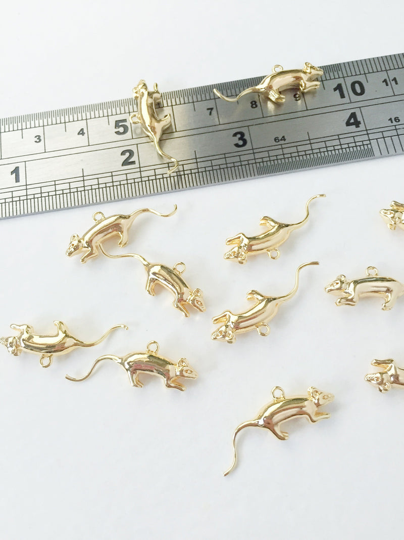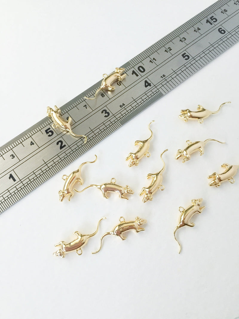 ✨ Tiny mouse charms, made of 18K gold plated brass