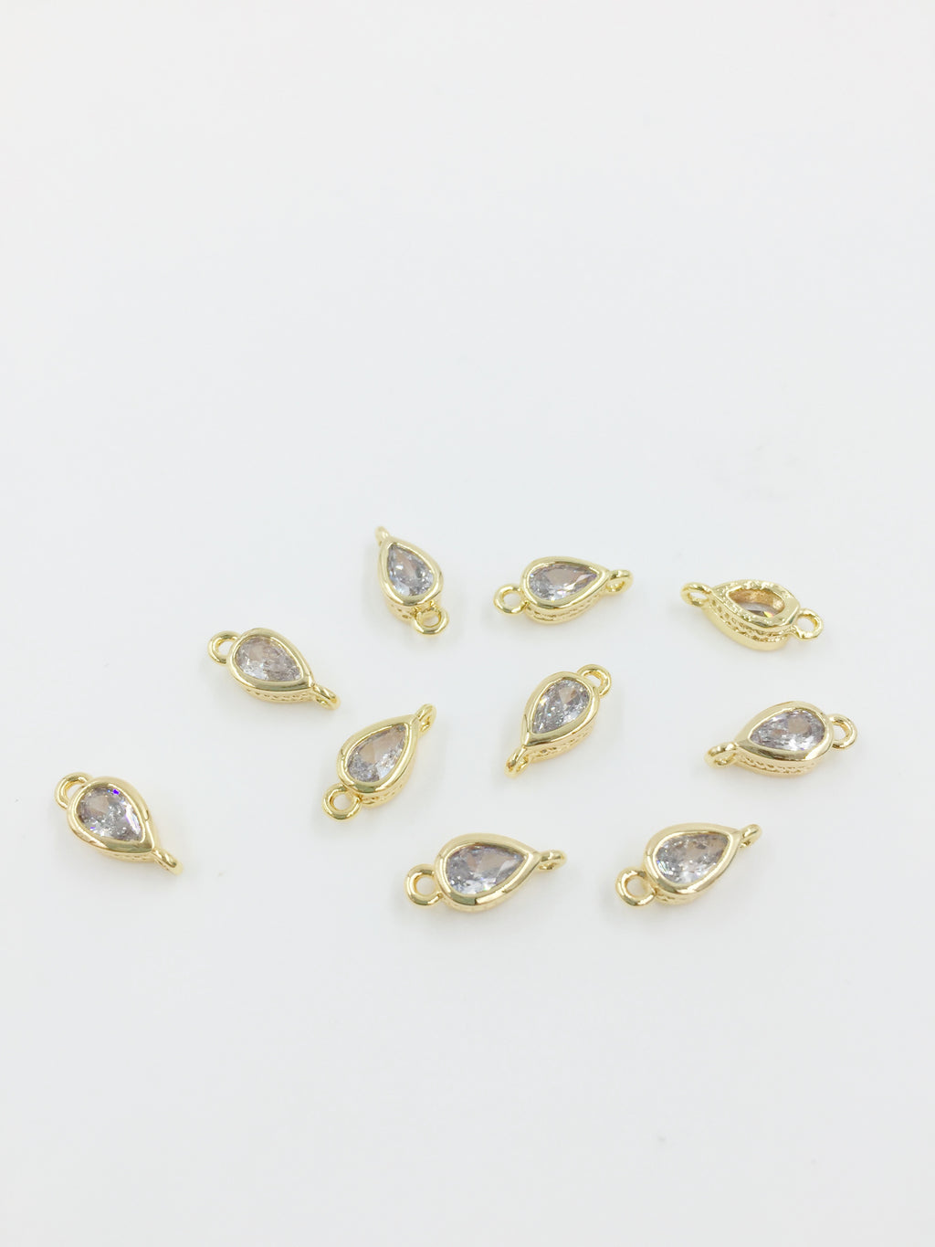 2 x 18K Gold Plated Tiny Cubic Zirconia Teardrop Jewellery Connectors, 10x4mm (1357)