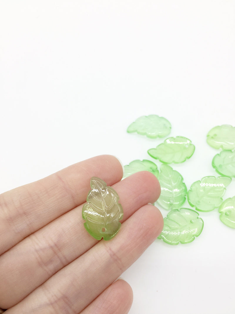 20 x Light Green Jade Imitation Leaf Beads 15x23mm Green Glass Leaf Charms Green Leaf Pendants