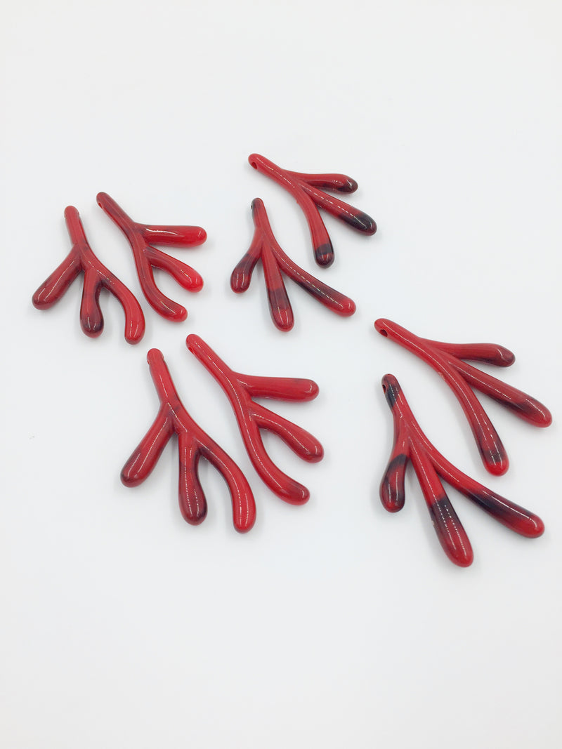 4 pairs x Red Acrylic Coral Branches (H1D)