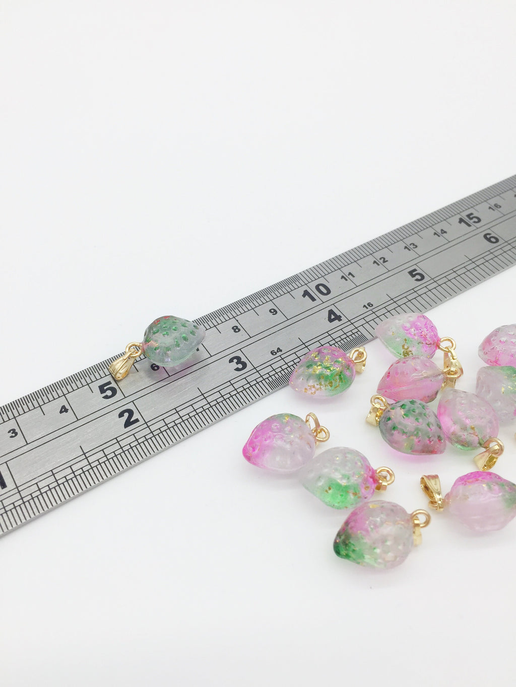 ✨ Glass strawberry charms, come with bails.