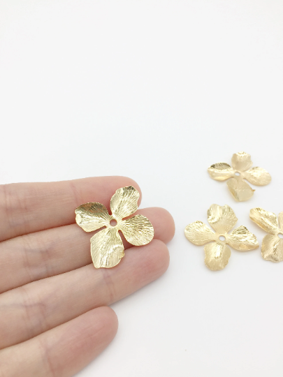 4 x Gold Metal Flowers With Textured Petals, 32x28mm (3712)