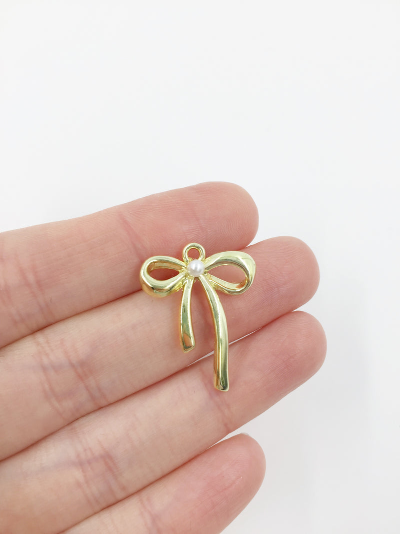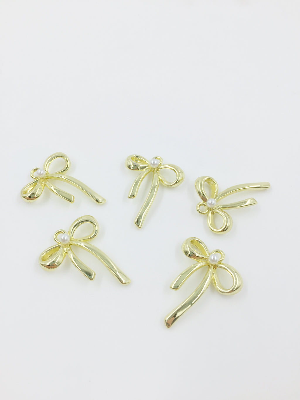 ✨ Light gold tone alloy bowknot pendants with faux pearl.