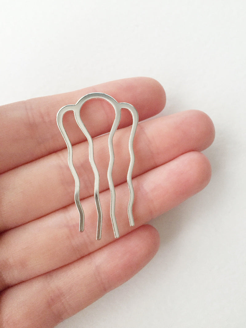2 x Ornate Bright Silver Hair Comb Base, 25x45mm (3040)
