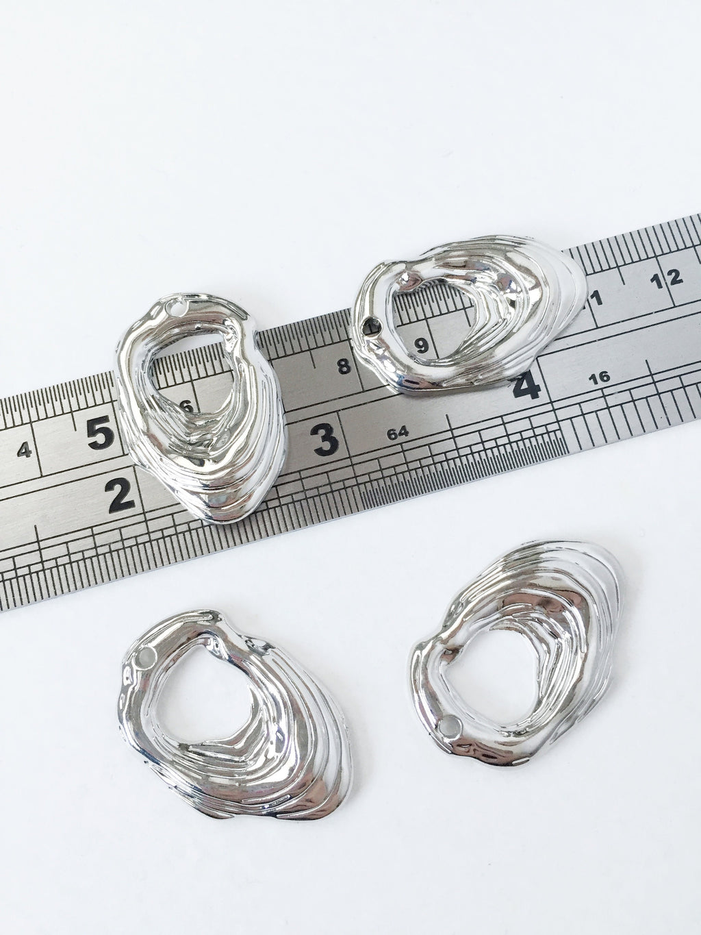 2 x Platinum Plated Puddle Shaped Pendants, 30x20mm (0874P)