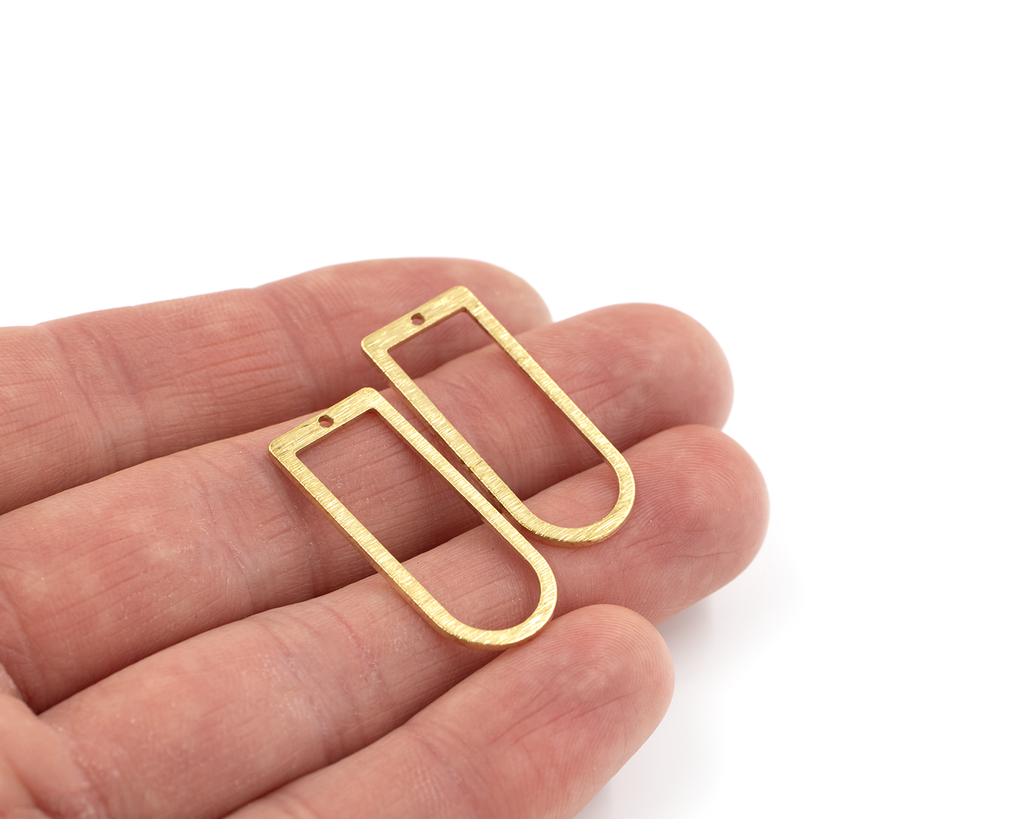 4 x Raw Brass Open D-shape Pendants, 30x13mm (C0504)